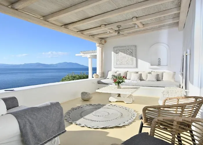 De plus, cette propriété de Mykonos Town se trouve à environ 10 minutes en voiture des Moulins à vents de Mykonos et à environ 15 minutes en voiture de la Maison de Lena. Cette villa de 5 chambres offre un accès facile aux merveilles naturelles telles que les Délos 4 et la Plage d'Agios Stefanos 4,1.